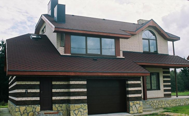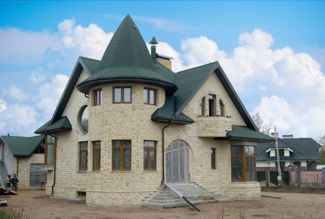 Оригінальні закруглені гонти, що нагадують морські хвилі. Хвилюючі форми для тих, хто бажає надати своєму будинку більше індивідуальності. Не тільки форма матеріалу, а й забарвлення, запозичені від природних фарб, дозволяють будинку вдало вписатися в будь-який ландшафт.