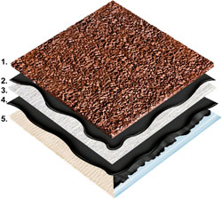 Верхня частина гонта — незнімна ПЕТ-плівка. Нижня частина гонта — суцільна клейова смуга, покрита знімною силіконовою плівкою.