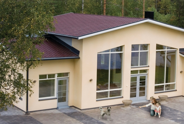 Гнучка черепиця у вигляді неправильних прямокутників Kerabit "Квадро, форма L" допомагає втілити будь-які сміливі архітектурні проекти. Крім того, колекція постійно розширюється за рахунок додавання нових кольорів.