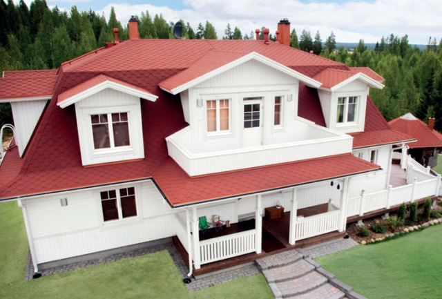 Гнучка черепицяKerabit "Однотонна, форма К" зробить будь-яку споруду більш привабливою, створивши в архітектурних формах нові грані прекрасного.