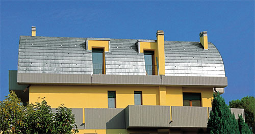 Пропонуємо до Вашої уваги ексклюзивну лінію бітумної черепиці TM Tegola (Італія) з металевим покриттям. Лицьова поверхня такої черепиці покрита листом міді (натуральної/патинованої/захищеної від окислення/позолоченої) або листом цинк-титану; нижня — поліпропіленовою плівкою.