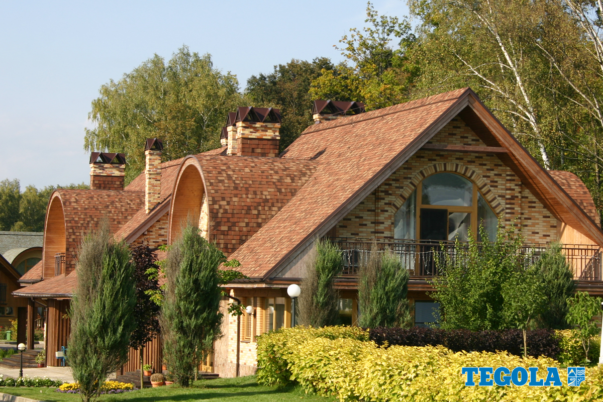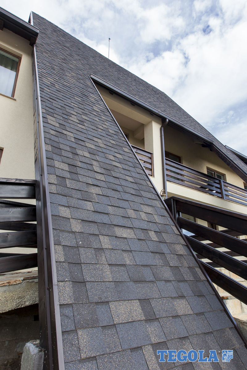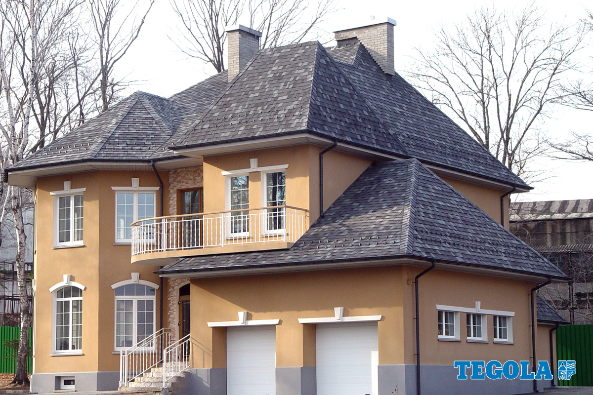 Листи гнучкої черепиці цієї колекції складаються із двох шарів. Пелюстки прямокутної форми з ледь помітно скошеними кутами мають різний розмір. Унікальний ефект покрівлі, виконаної з керамічної черепиці, сланцевих плиток або дерев'яної дранки, виникає завдяки перекриванню гонтів.