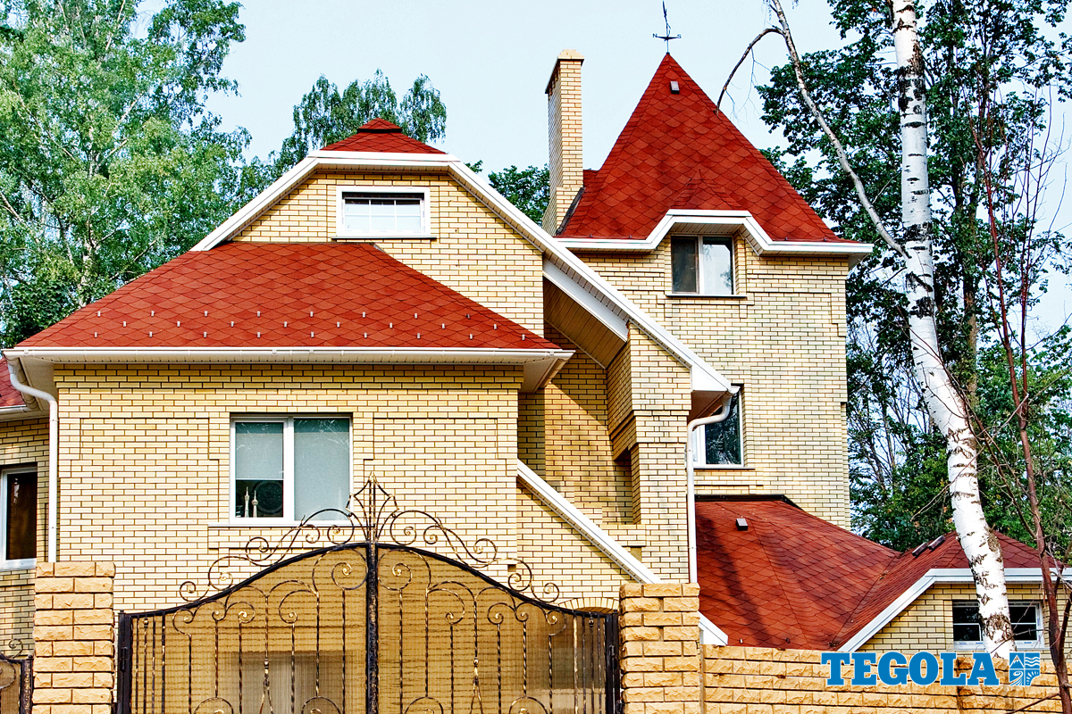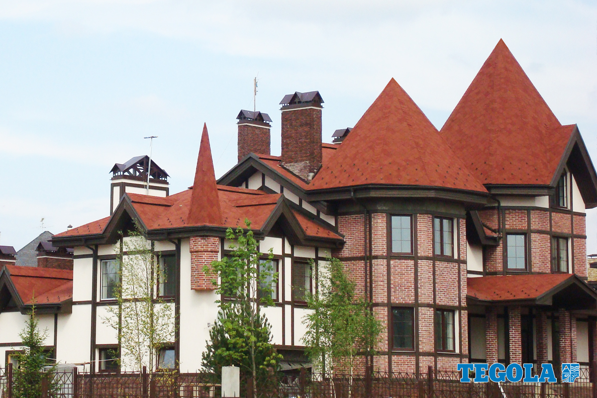 Після укладання готова покрівля дуже нагадує дахи розкішних палаців і старовинних замків. Тегола Версаль — це п'ять кольорів — червоний Майоліка, Коричневий Мореон, Сірий Ардезія, Зелений Смеральдо.