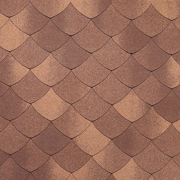 Бітумна черепиця Версаль особливо виграшно виглядає на багатоярусних дахах зі складною геометрією. Лускатий малюнок покрівельного покриття чудово підкреслює криволінійні форми даху. Елегантність форм закруглених пелюсток доповнюється благородними відтінками кольору.