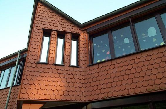 Тим більше при такому розмаїтті варіантів: вісім колірних відтінків і чотири форми краю (круглий, сегментний, прямий та прямий із закругленими кутами), ці варіанти натуральної черепиці у поєднанні з різними способами монтажу — лускатим, вінцевим та ін. — дають практично необмежені можливості побудови покрівлі.