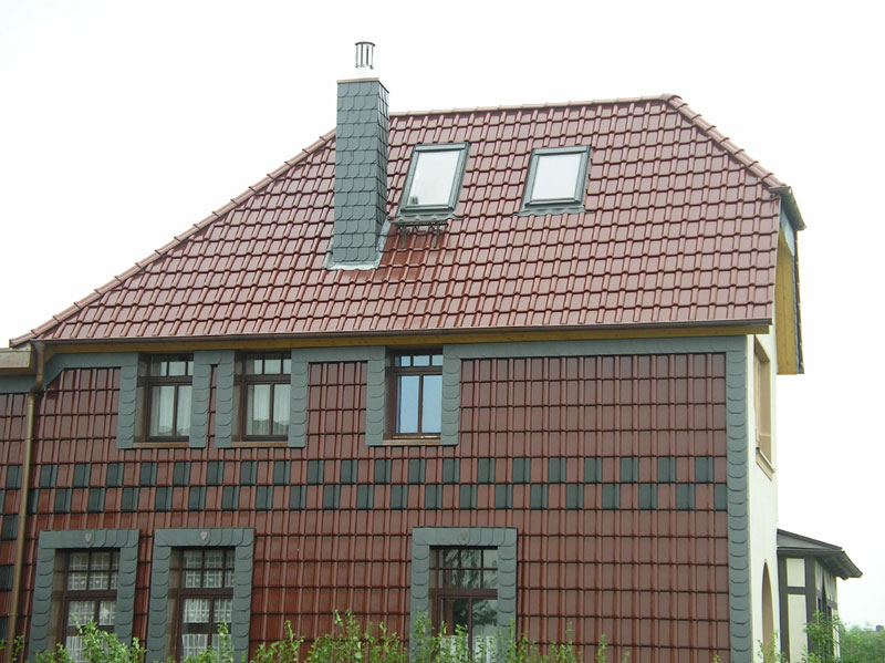 Інноваційна модель глиняної черепиці поєднує в собі позачасовий естетичний дизайн із революційним прогресом техніки: єдина модель із двома областями зсуву! Найширший асортимент аксесуарів з того ж матеріалу дозволяє завершити «глина до глини» гребні, фронтони та розжолобки.
