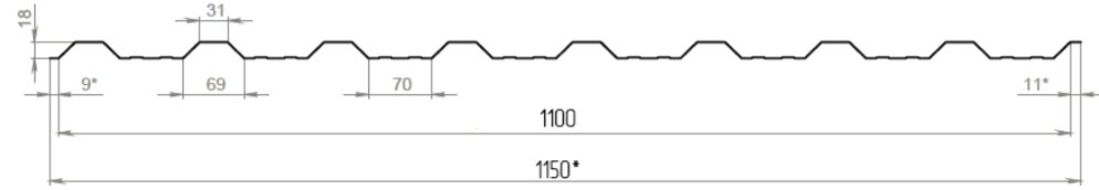 ПрофнастилПС 18, завжди актуальний та стильний матеріал, підходить для будівель із різноманітною архітектурою. Завдяки класичній формі, ця модель успішно використовується для реставраційних робіт.