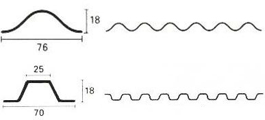 | Довжина листа, (мм) Ширина листа, (мм) Товщина листа, (мм) Крок хвилі, (мм) Висота хвилі, (мм) Вага, (кг/м2) |