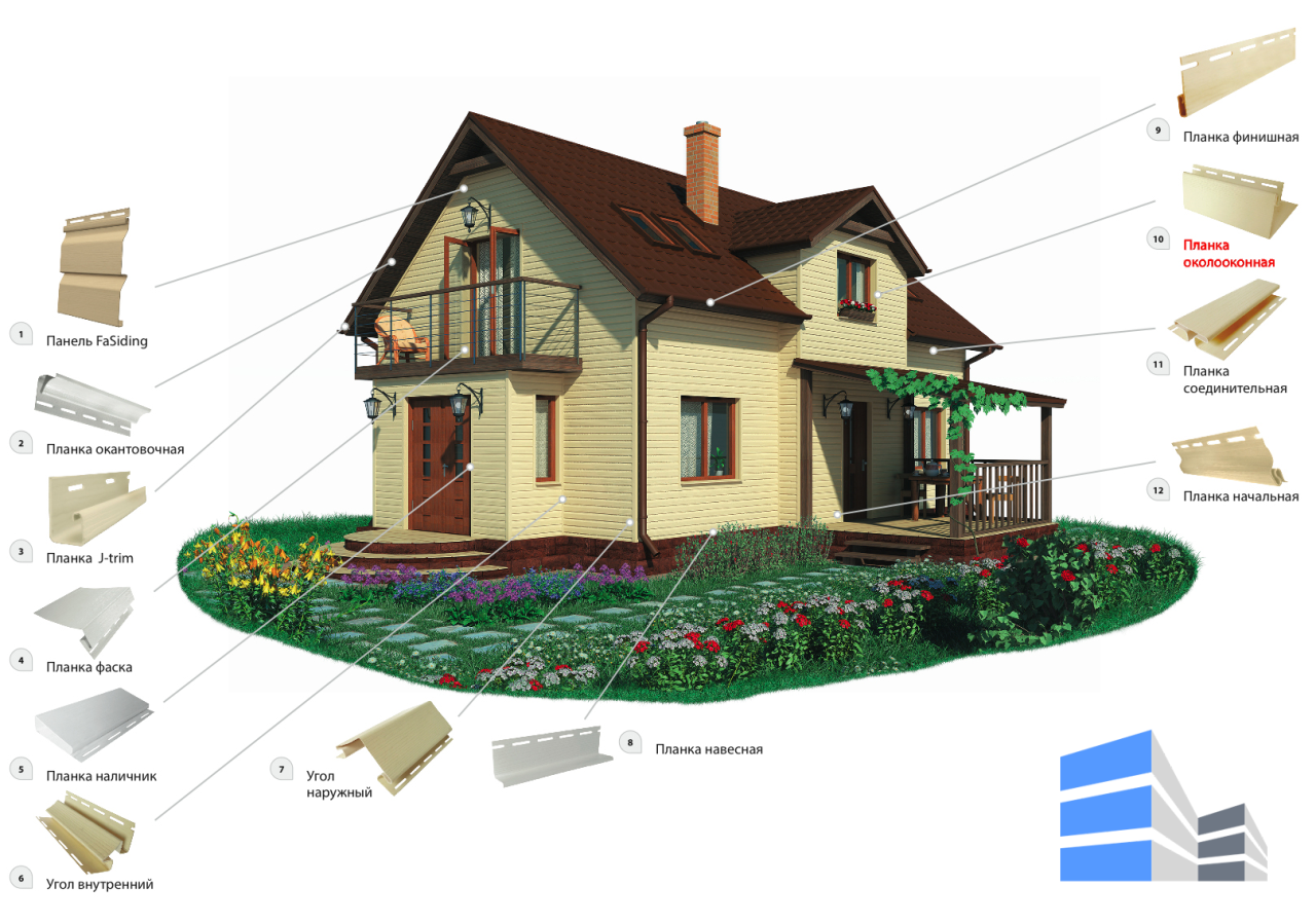 Навколовіконна планка виконує подвійну функцію — закриває дверні, віконні укоси і замінює широку лиштву (J-профіль).