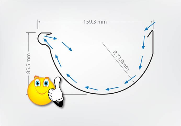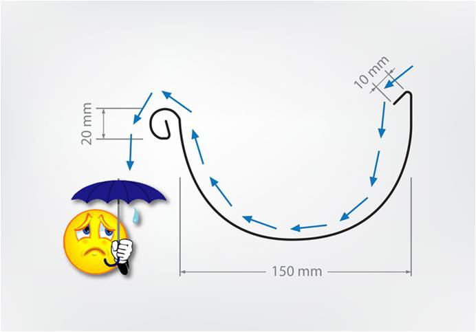 Завдяки особливій формі жолоба водостічна системаNovatik Ronda 150/100 вигідно відрізняється від інших систем, а також краще захищає фасад від переливу дощової води. Видима кромка жолоба загнута всередину, а не назовні, як у інших системах, забезпечуючи тим самим збір більшої кількості води на погонний метр жолоба.