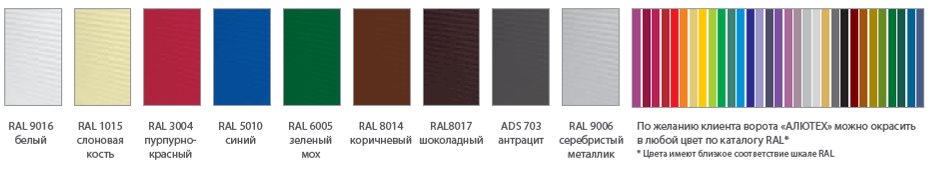 Можливість фарбування воріт Alutech в будь-який колір, що має близьку відповідність колірній палітрі RAL, дозволяє досягти ідеального поєднання кольорів з вікнами, покрівлею і фасадом будівлі.