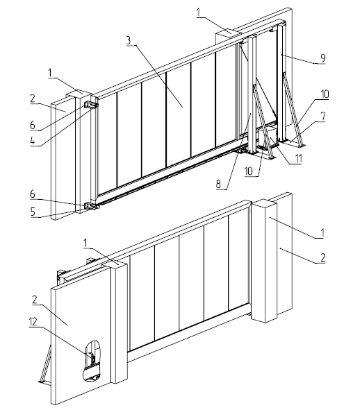 суміщений з профілем рами, забезпечує високу жорсткість, міцність та надійність конструкції зсувних воріт;Додаткова комплектація автоматичних в'їзних воріт: