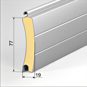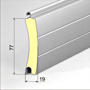 Ролетні профілі екструдовані. Екструдовані профілі для ролетних воріт виготовляються з алюмінієвих злитків за технологією видавлювання через фільєри матриці та подальшої технології штампування. Оглядові профілі забезпечують попадання денного світла у приміщення, вентиляційні – додатковий повітрообмін у приміщенні. Оглядові профілі застосовуються з прозорими полікарбонатними вставками PI/77.