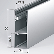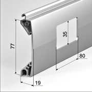 Кінцевий профіль. Широкий асортимент кінцевих профілів дозволяє вибрати як економічний варіант (ES/77), так і профілі з можливістю встановлення замка ригельного RL/77 і кінцевого захоплення SH/77 (ESR/77 і ESR/77R). Два варіанти виконання ригельних профілів дозволяють встановити ригельний замок як зовні, так і всередині приміщення в залежності від виду монтажу та переваг замовника.
