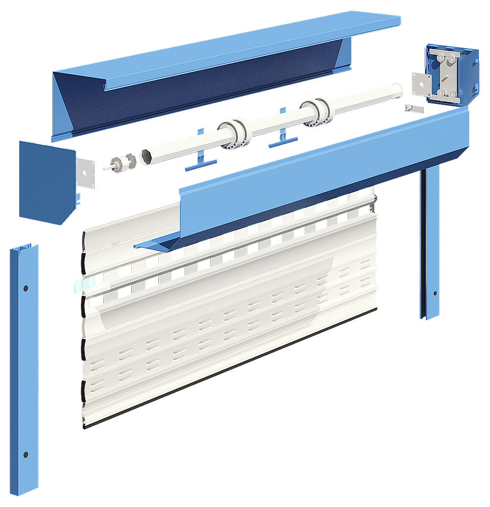 Захисні короби. Alutech виготовляє широкий асортимент захисних коробів. Для ролетних воріт пропонуються 45-градусні ролформінгові короби різних типорозмірів — від 250 до 405 (мм).