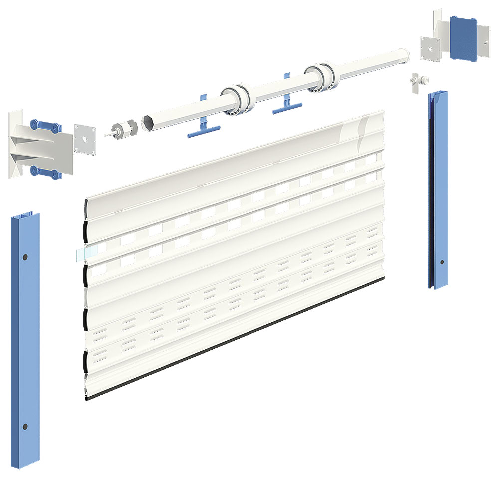 Ролетні профілі. Полотно ролетних воріт складається з алюмінієвих профілів роликової прокатки та екструдованих. Профілі роликової прокатки. Профілі виготовлені з високоякісної алюмінієвої стрічки з двошаровим лакофарбовим покриттям, що відрізняється високою стійкістю до зносу. Завдяки пінозаповненню профілі мають тепло та звукоізоляційні характеристики.