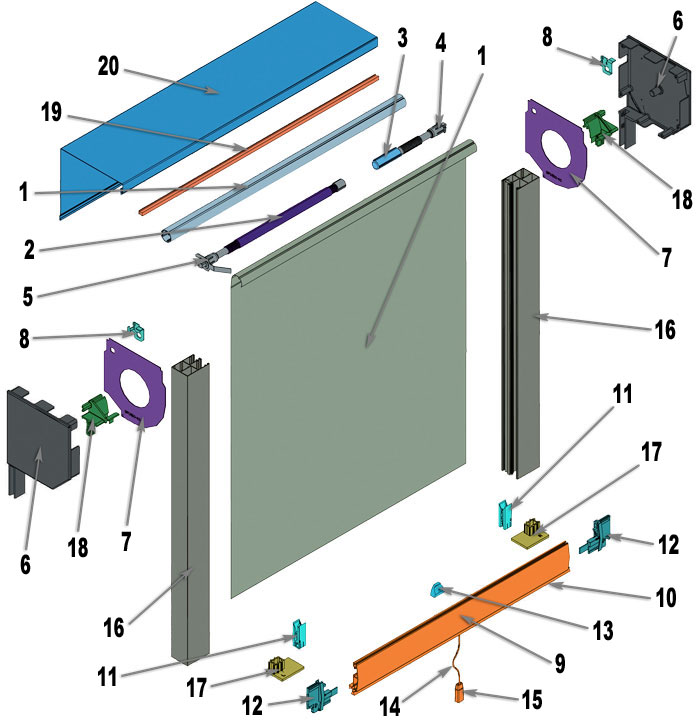 | 11 | Механізм фіксації сітки M-NLM. | Стопор у збиранні. Встановлюється у напрямну шину M-GR53x39IE. Забезпечує замикання сітки. |